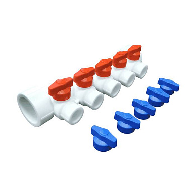 Коллектор PP-R бел Дн40х20 на 5 выходов с кранами VALFEX 101134005 (128-8962)